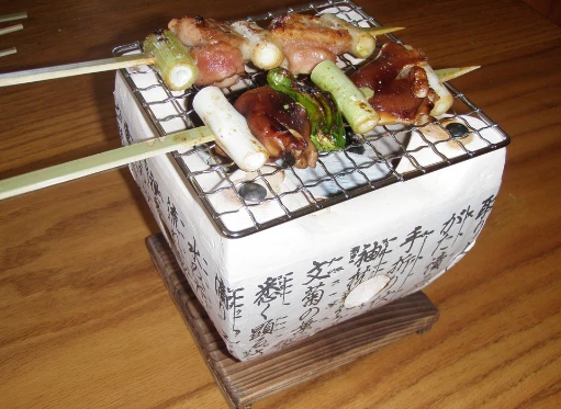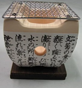 Konro Square BBQ grill, 20 x 20 cm. includes cooking net and wooden protective tray. Perfect for 2-3 people. Uses charcoal.Â