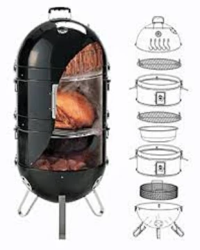 The Ranger is our entry level BBQ Smoker, reasonably priced, with some cool features that make it an ideal starter unit that’ll get you hooked on smoking food all year round, it is also extremely durable and compact making it perfect if you have a small garden. It’s also the first of our smokers to feature a wok shaped waterpan, with a removeable handle. Grill, roast, stirfry or smoke food. Fish/ meat hanger included, with 5 hooks. It has thick walls for robustness and insulation, long lasting stainless steel grills, making it easy to clean. The side handles are PVC coated for a cooler touch, and the probe eyelets (fitted on each stacker) are made from silicon to protect your probe wires from damage, they fit a wide range of probe sizes. The smoker’s modular design makes it easy to increase capacity by adding an extra stacker. Use just the lid and base as a portable “kettle” BBQ, great for the beach. There are 3 air vents in the base to allow for excellent temperature control. Assembled, the Ranger stands at 98cm and has a 37cm diameter.