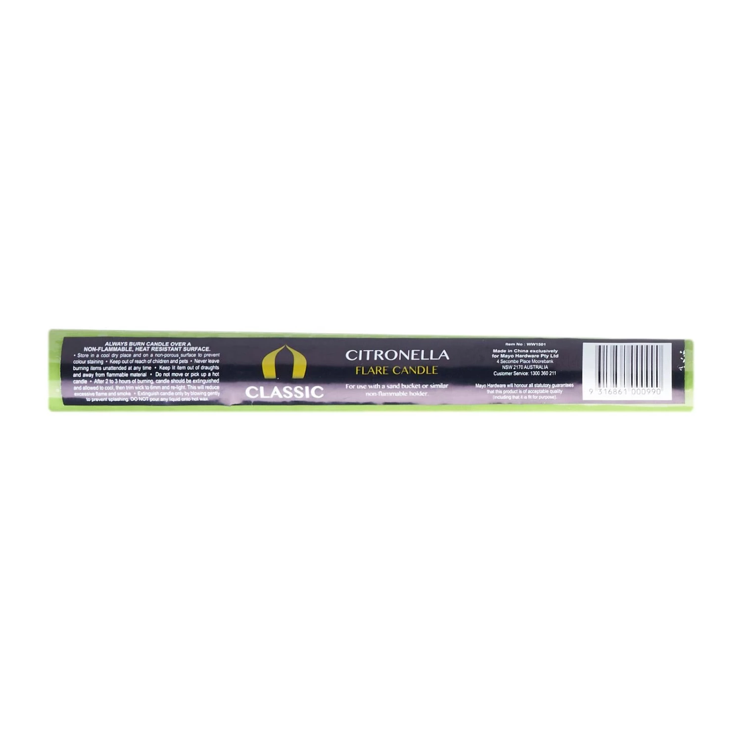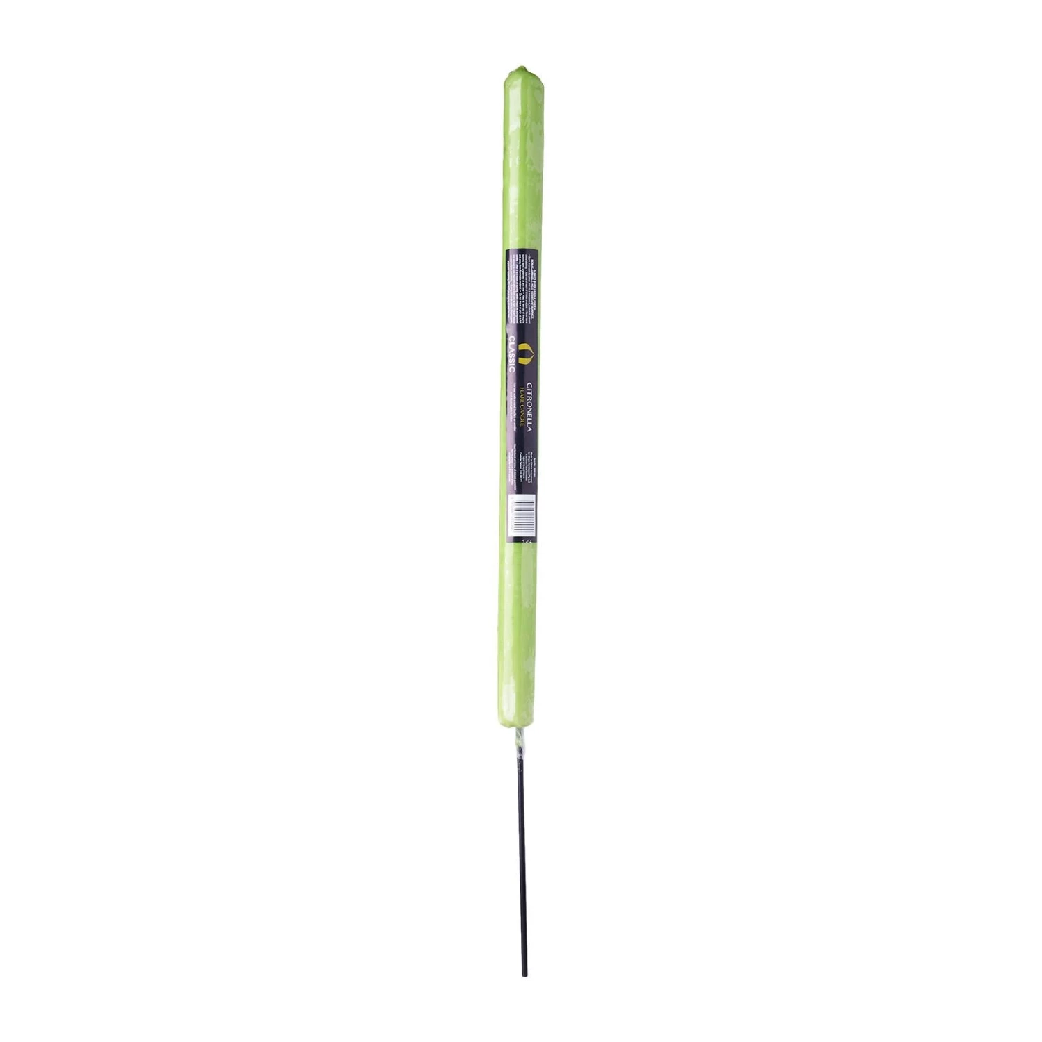 Citronella flare candle, protection against bugs and mozzies. lasts up to 3 hours. Color: Green.