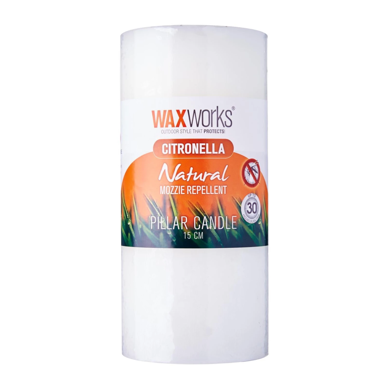 Citronella Pillar Candle helps keep unwanted mosquitoes away and looks stylish in your outdoor area ,15 cm in length and lasts up to 30 hours.