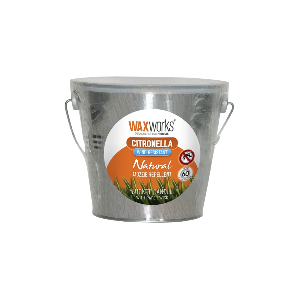 Bucket Candle contains citronella essential oil – nature’s weapon against mosquitoes. Handy Bucket with re-sealable lid and handle for ease of movement. Add ambience to outdoor entertaining. Made from quality materials for a cleaner burn Vibrant, modern color assortment, 60 hours burn time.