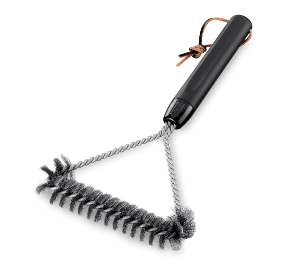 Shaped like a triangle, this 12 inch three-sided brush cleans in between the cooking grates and in tight spaces at the edges of the grilling surface. Also available in a 21″ length.