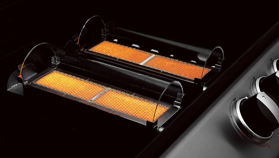 The dual halogen lights inside each hood and LED control panel lights complete the exceptional outdoor grilling experience.