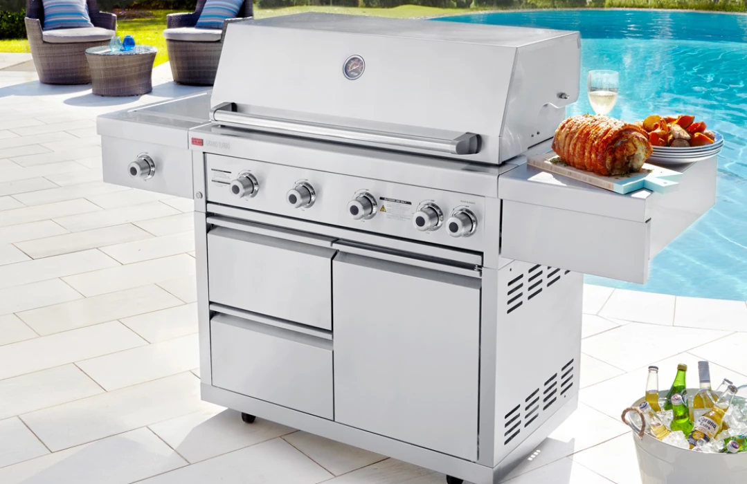 Bring your outdoor entertaining to new levels with the Grand Turbo 4 Burner barbeque on Cart with Side Burner.